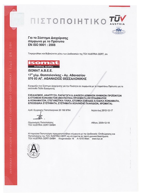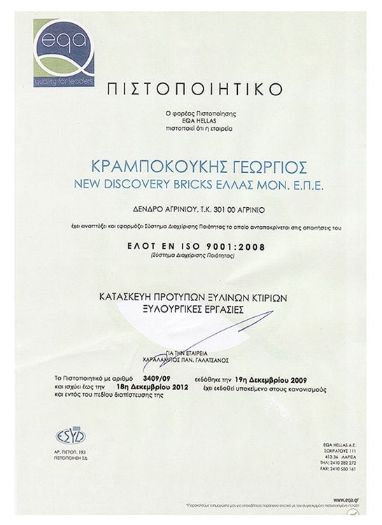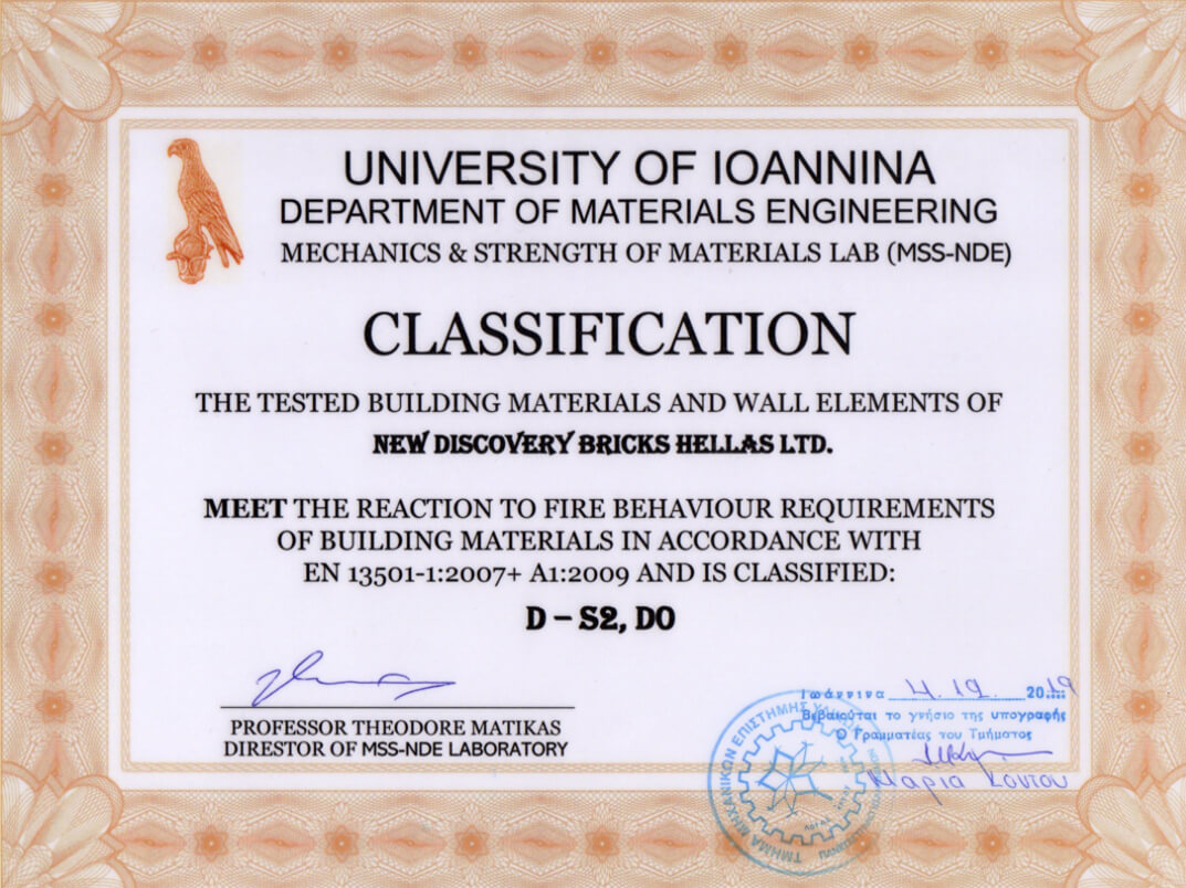 Newdb consists of a combination of modern and reliable materials, which have successfully passed the relevant inspections and tests (TEST V313) and fully comply with European Fire Legislation (EN13501-4) regarding how the materials react to fire, hygiene issues (EN120), quality and thermal conductivity (EN 13164), while also having all the necessary certificates (ISO Certificate) that prove their suitability for use in Newdb technology. Following evaluations, our company as well as cooperating companies which manufacture raw materials are holders of a great number of certificates which are available to our customers for viewing.